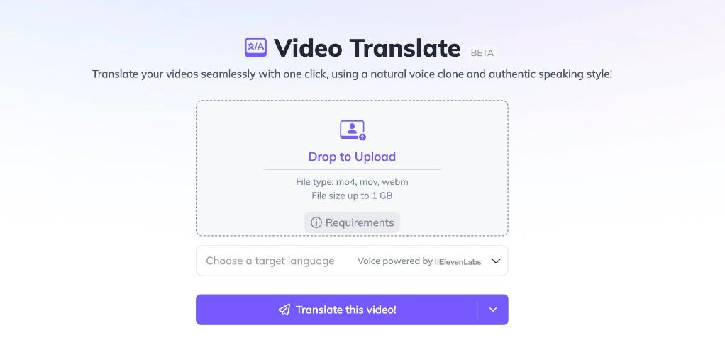 圖為一款AI視頻翻譯平臺網(wǎng)頁(yè)截圖。