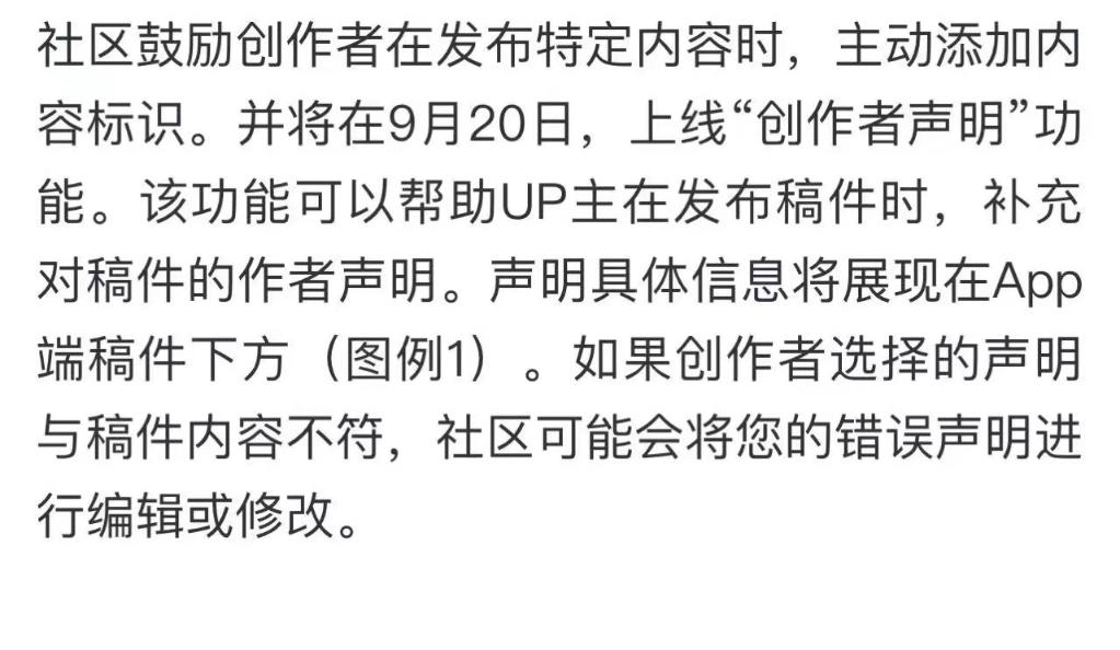 圖為某視頻發(fā)布平臺“主動(dòng)添加內容標識”公告截圖。