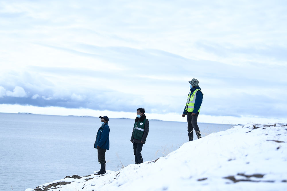 2021年10月20日,在青海省果洛藏族自治州瑪多縣扎陵湖鄉勒那村,三江源國家公園黃河源園區生態(tài)管護員在扎陵湖畔巡護。新華社記者 李占軼 攝