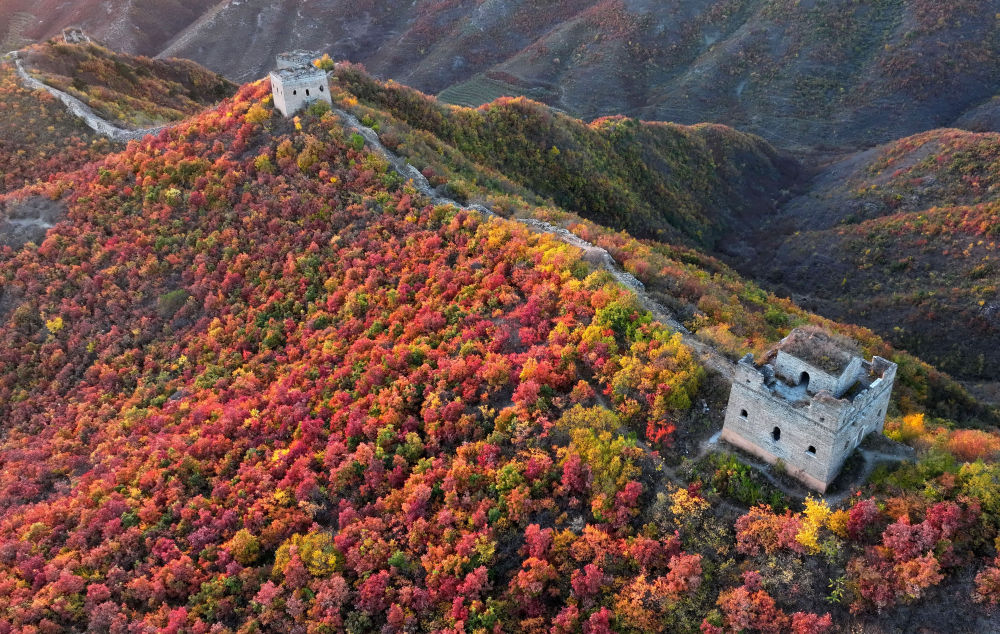 這是2023年10月26日在河北省秦皇島市海港區境內拍攝的城子峪長(cháng)城景色(無(wú)人機照片)。新華社記者 楊世堯 攝