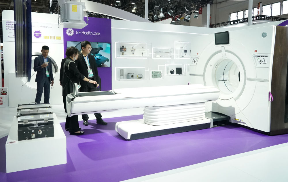 這是在首屆中國國際供應鏈促進(jìn)博覽會(huì )健康生活鏈展區拍攝的GE醫療展位(2023年11月29日攝)。新華社記者 任超 攝
