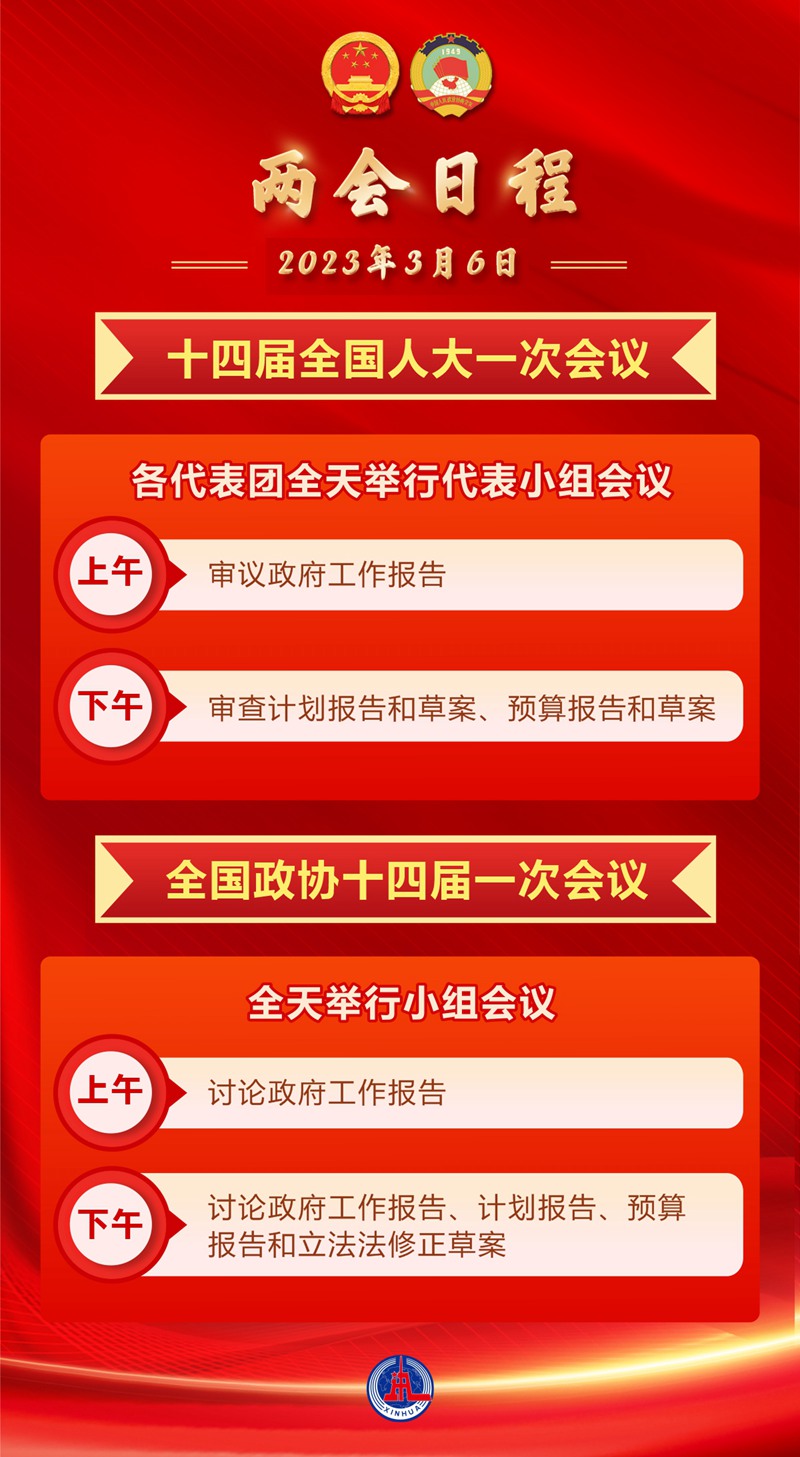 新華社北京3月5日電 十四屆全國人大一次會(huì )議各代表團6日全天舉行代表小組會(huì )議。上午審議政府工作報告,下午審查計劃報告和草案、預算報告和草案。