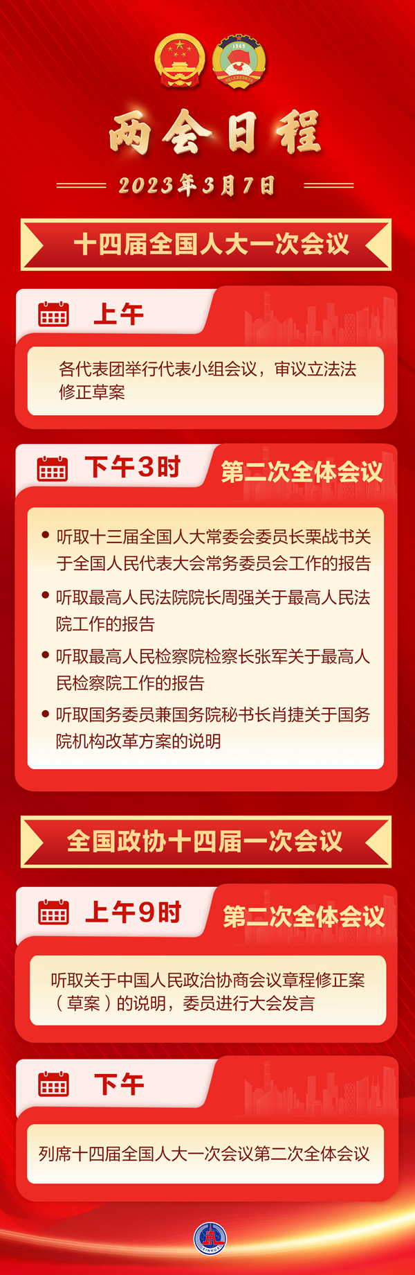 下午3時(shí),十四屆全國人大一次會(huì )議在人民大會(huì )堂舉行第二次全體會(huì )議,聽(tīng)取十三屆全國人大常委會(huì )委員長(cháng)栗戰書(shū)關(guān)于全國人民代表大會(huì )常務(wù)委員會(huì )工作的報告,聽(tīng)取最高人民法院院長(cháng)周強關(guān)于最高人民法院工作的報告,聽(tīng)取最高人民檢察院檢察長(cháng)張軍關(guān)于最高人民檢察院工作的報告,聽(tīng)取國務(wù)委員兼國務(wù)院秘書(shū)長(cháng)肖捷關(guān)于國務(wù)院機構改革方案的說(shuō)明。