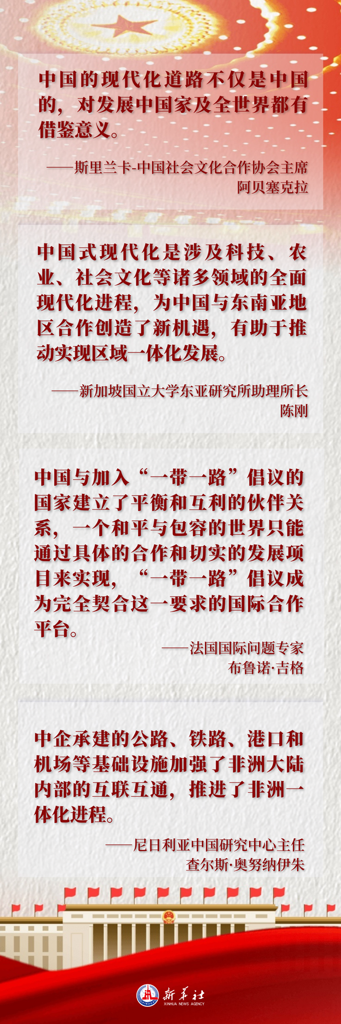 中共二十大擘畫(huà)出全面建設社會(huì )主義現代化國家、以中國式現代化全面推進(jìn)中華民族偉大復興的宏偉藍圖。在跟蹤關(guān)注中國兩會(huì )進(jìn)程的海外人士看來(lái),中國式現代化不僅為中國同世界各國合作提供新的機遇,也破解了人類(lèi)社會(huì )發(fā)展的諸多難題,創(chuàng )造了人類(lèi)文明新形態(tài),帶來(lái)重要啟示。