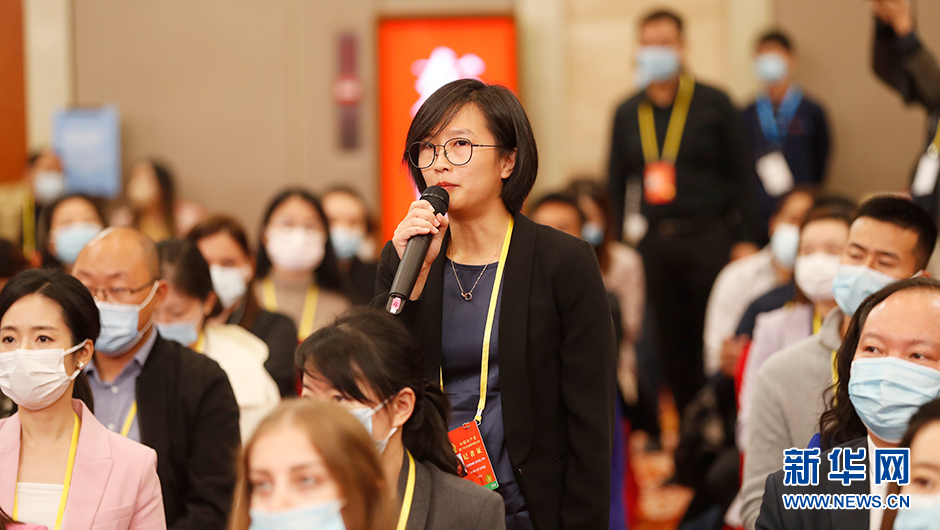 10月17日(星期一)10:00,二十大新聞中心在梅地亞新聞中心二層新聞發(fā)布廳舉辦第一場(chǎng)記者招待會(huì )。這是美國消費者新聞與商業(yè)頻道記者在分會(huì )場(chǎng)提問(wèn)。(新華網(wǎng) 陳杰 攝)