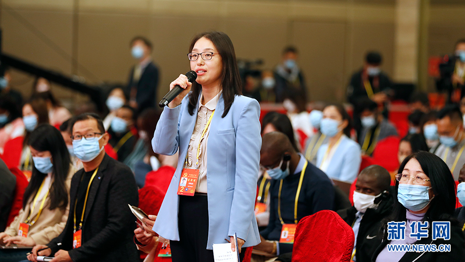 10月17日(星期一)15:00,二十大新聞中心在梅地亞新聞中心二層新聞發(fā)布廳舉辦第二場(chǎng)記者招待會(huì )。圖為求是雜志記者在分會(huì )場(chǎng)提問(wèn)。(新華網(wǎng) 陳杰 攝)