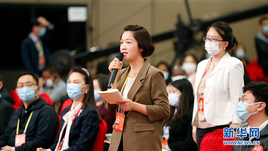 10月17日(星期一)15:00,二十大新聞中心在梅地亞新聞中心二層新聞發(fā)布廳舉辦第二場(chǎng)記者招待會(huì )。圖為光明日報記者在分會(huì )場(chǎng)提問(wèn)。(新華網(wǎng) 陳杰 攝)