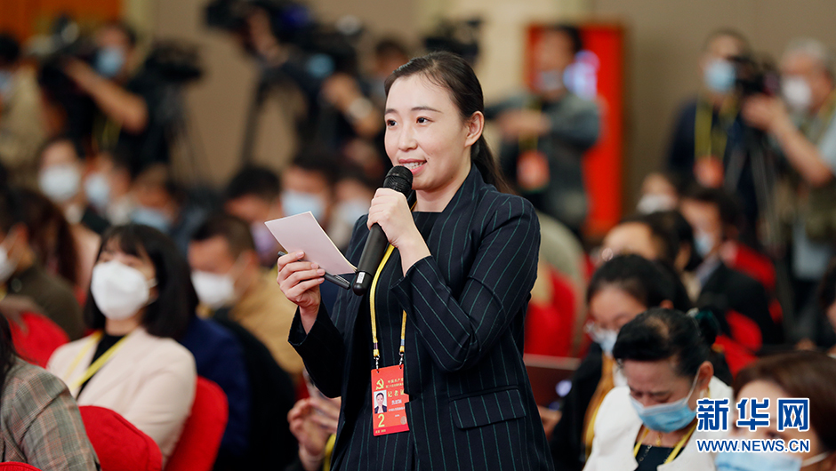 10月18日(星期二)19:30,二十大新聞中心在梅地亞新聞中心二層新聞發(fā)布廳舉辦第二場(chǎng)集體采訪(fǎng)。圖為中國自然資源報記者在分會(huì )場(chǎng)提問(wèn)。(新華網(wǎng) 陳杰 攝)