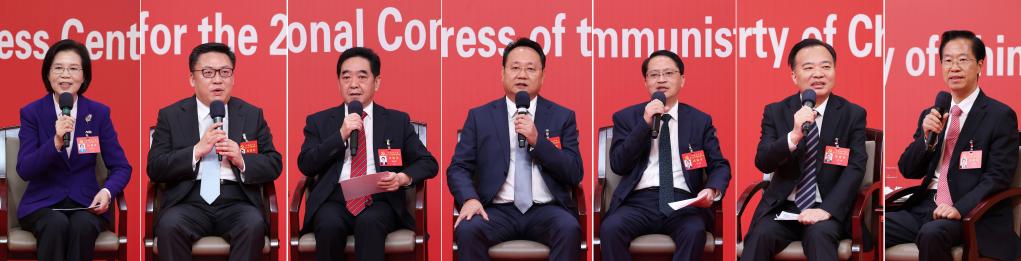 10月18日,中國共產(chǎn)黨第二十次全國代表大會(huì )新聞中心舉行集體采訪(fǎng)。黑龍江、上海、江蘇、浙江、安徽、福建、江西代表團新聞發(fā)言人出席,介紹代表團學(xué)習討論二十大報告情況,并回答記者提問(wèn)(拼版照片)。