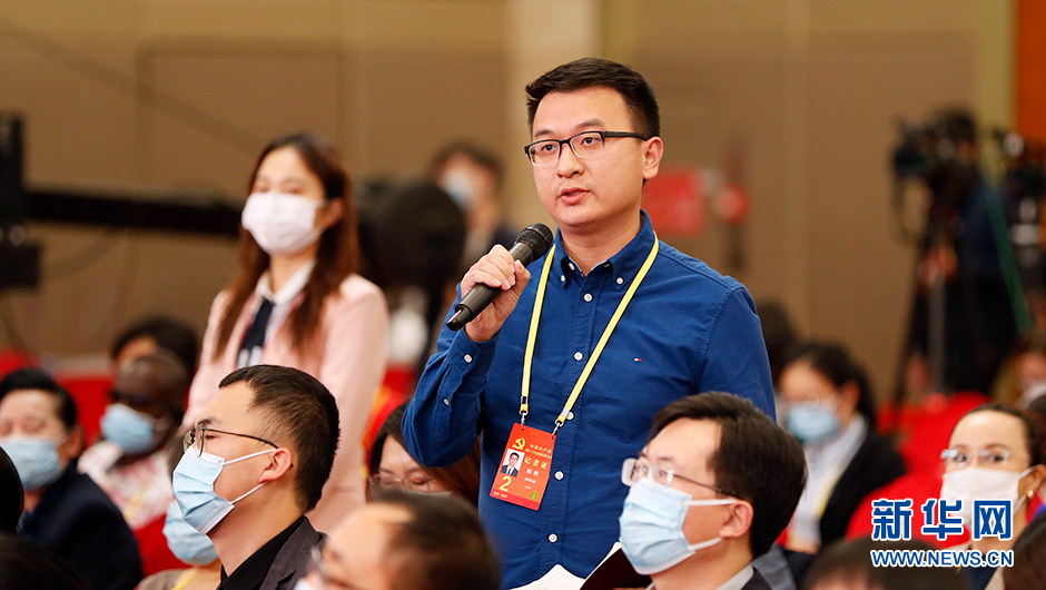 10月19日(星期三)15:00,二十大新聞中心在梅地亞新聞中心二層新聞發(fā)布廳舉辦第三場(chǎng)集體采訪(fǎng)。圖為光明日報記者在分會(huì )場(chǎng)提問(wèn)。(新華網(wǎng) 陳杰 攝)