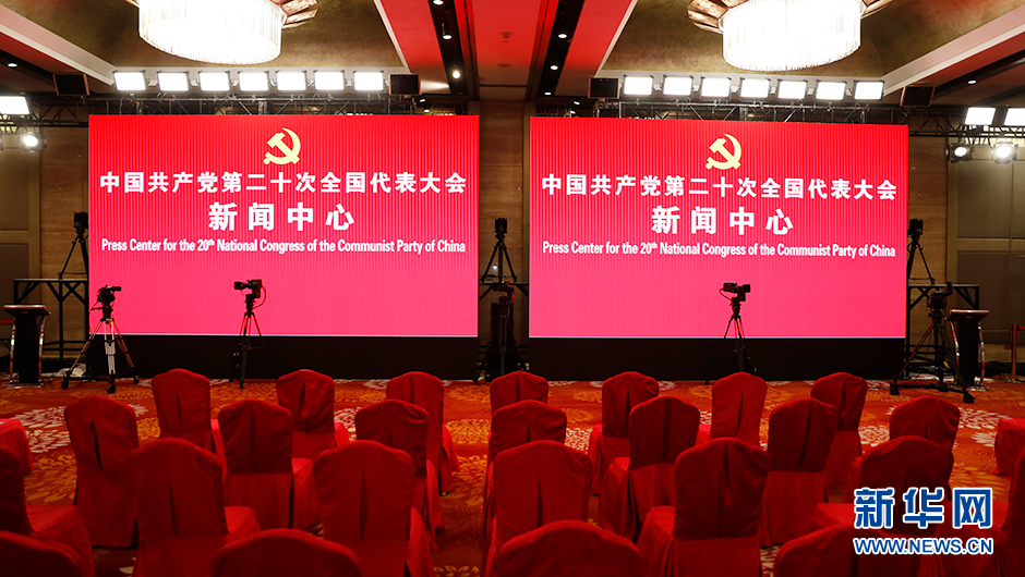 10月19日(星期三)19:30,二十大新聞中心將在梅地亞新聞中心二層新聞發(fā)布廳舉辦第四場(chǎng)集體采訪(fǎng)。圖為集體采訪(fǎng)前新世紀日航飯店三層世紀廳分會(huì )場(chǎng)。(新華網(wǎng) 陳杰 攝)