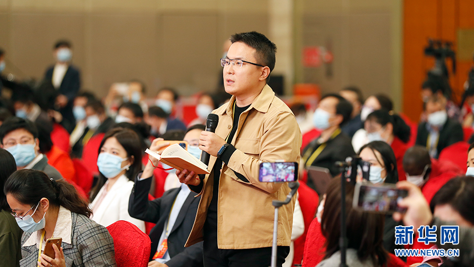 10月19日(星期三)19:30,二十大新聞中心在梅地亞新聞中心二層新聞發(fā)布廳舉辦第四場(chǎng)集體采訪(fǎng)。圖為人民日報記者在分會(huì )場(chǎng)提問(wèn)。(新華網(wǎng) 陳杰 攝)
