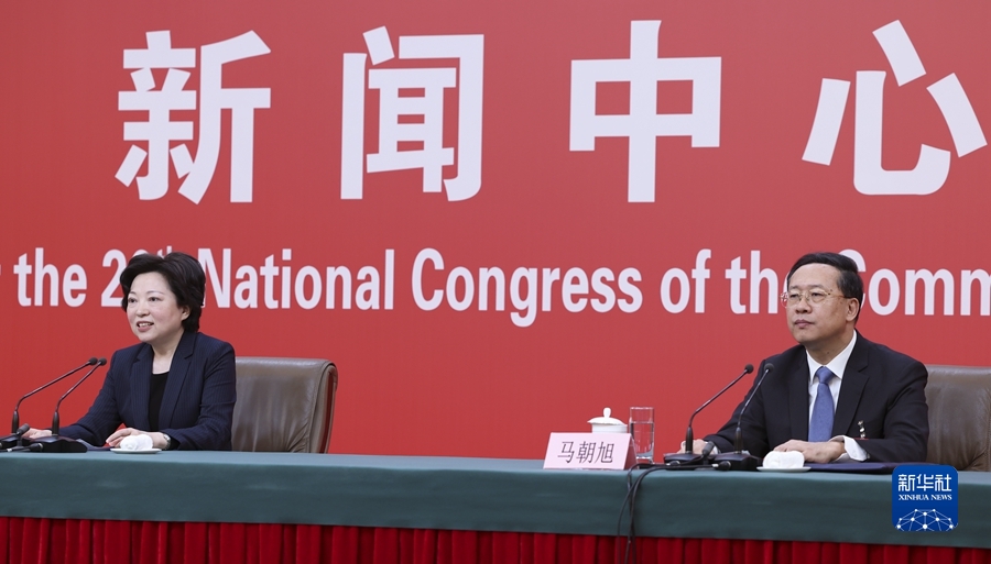 10月20日,中國共產(chǎn)黨第二十次全國代表大會(huì )新聞中心舉行記者招待會(huì )。中央對外聯(lián)絡(luò )部副部長(cháng)沈蓓莉,外交部黨委委員、副部長(cháng)馬朝旭圍繞“習近平外交思想指引中國特色大國外交開(kāi)拓前行”主題與記者交流。
