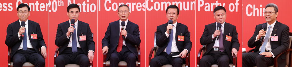 10月20日,中國共產(chǎn)黨第二十次全國代表大會(huì )新聞中心舉行集體采訪(fǎng)。青海、寧夏、新疆、中央和國家機關(guān)、中央金融系統、中央企業(yè)系統(在京)代表團新聞發(fā)言人出席,介紹代表團學(xué)習討論二十大報告情況,并回答記者提問(wèn)(拼版照片)。