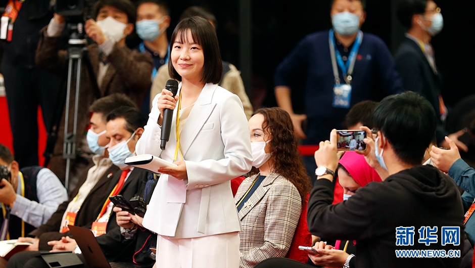 10月20日(星期四)10:00,二十大新聞中心在梅地亞新聞中心二層新聞發(fā)布廳舉辦第四場(chǎng)記者招待會(huì )。圖為中國日報記者在分會(huì )場(chǎng)提問(wèn)。(新華網(wǎng) 陳杰 攝)