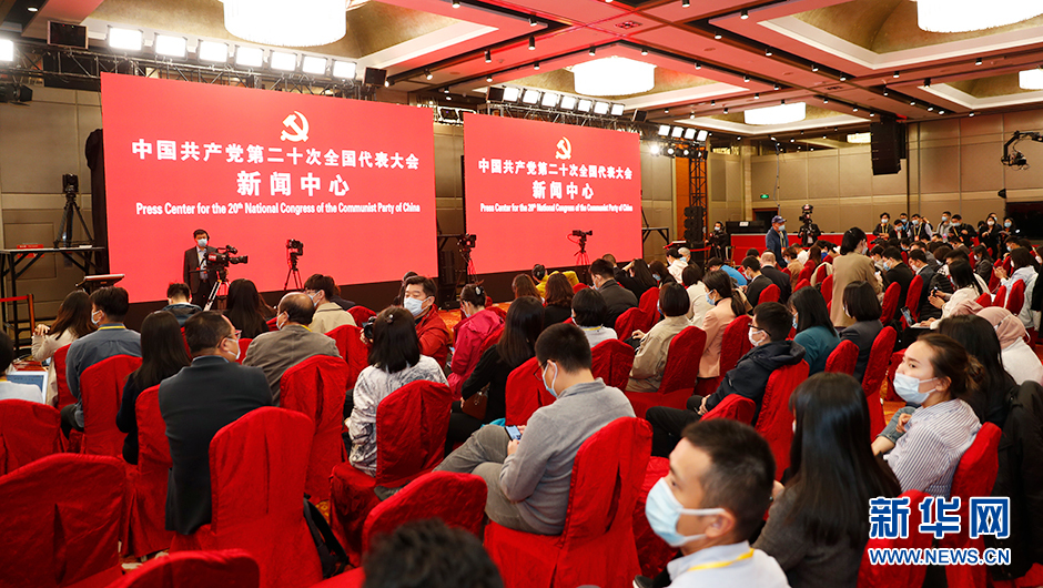 10月20日(星期四)19:30,二十大新聞中心將在梅地亞新聞中心二層新聞發(fā)布廳舉辦第五場(chǎng)集體采訪(fǎng)。圖為集體采訪(fǎng)前新世紀日航飯店三層世紀廳分會(huì )場(chǎng)。(新華網(wǎng) 陳杰 攝)