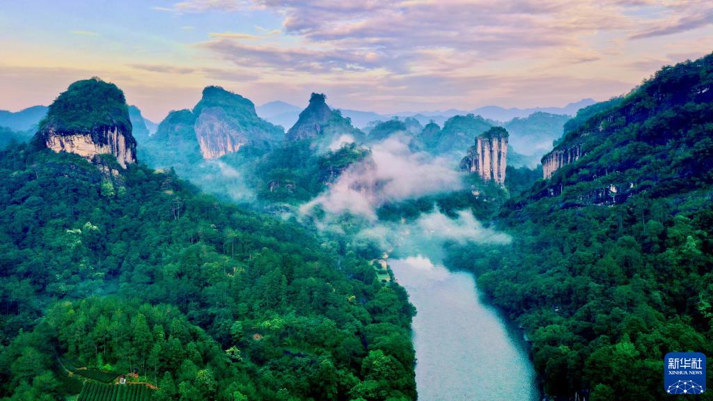 這是福建武夷山九曲溪兩岸的丹霞景觀(guān)(2022年6月7日攝,無(wú)人機照片)。新華社記者 姜克紅 攝