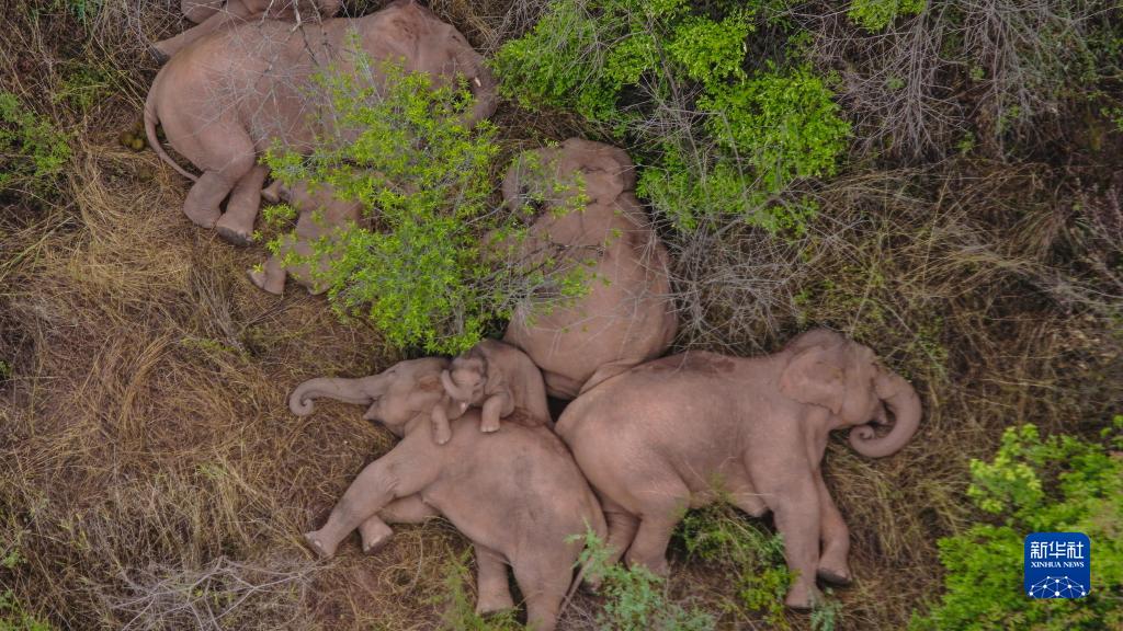 這是2021年6月7日在云南省昆明市晉寧區夕陽(yáng)彝族鄉拍攝的野象(無(wú)人機照片)。新華社發(fā)