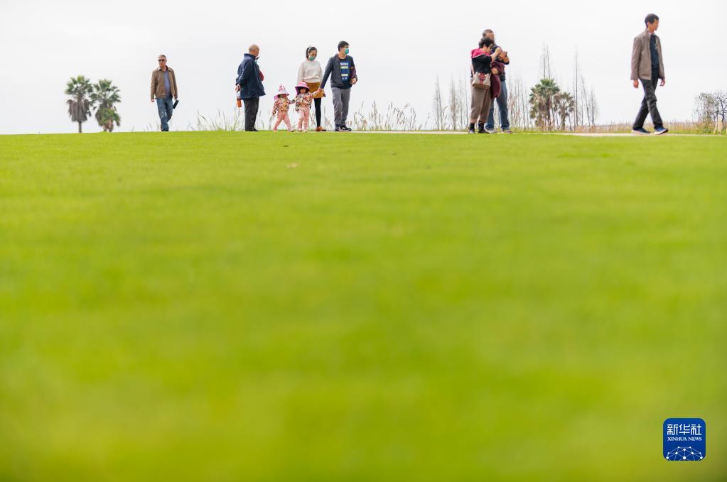 2021年10月25日,游客在云南昆明寶豐半島濕地游覽。新華社記者 陳欣波 攝