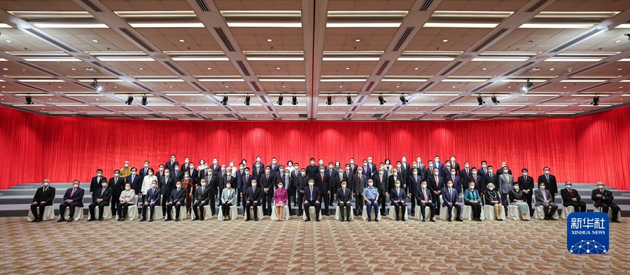 6月30日下午,國家主席習近平在香港會(huì )見(jiàn)香港特別行政區行政、立法、司法機關(guān)負責人。新華社記者 鞠鵬 攝