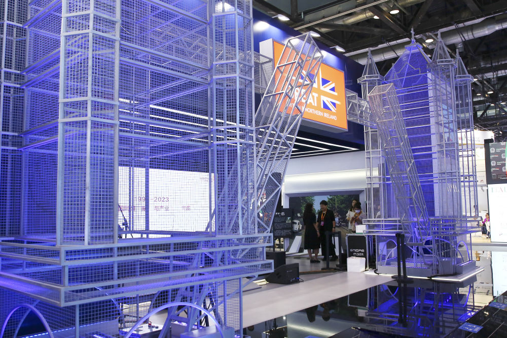 國家會(huì )議中心綜合展區內,主賓國英國國家館展臺前參觀(guān)者絡(luò )繹不絕。英國體育科技企業(yè)REZZIL運營(yíng)部主管克萊福德正忙著(zhù)為中國參觀(guān)者展示公司的虛擬現實(shí)互動(dòng)產(chǎn)品。