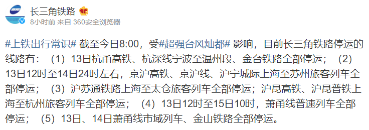 上海、杭州、寧波大量航班取消 多列動(dòng)車(chē)停運