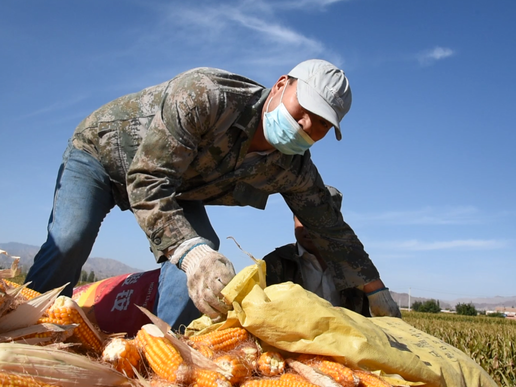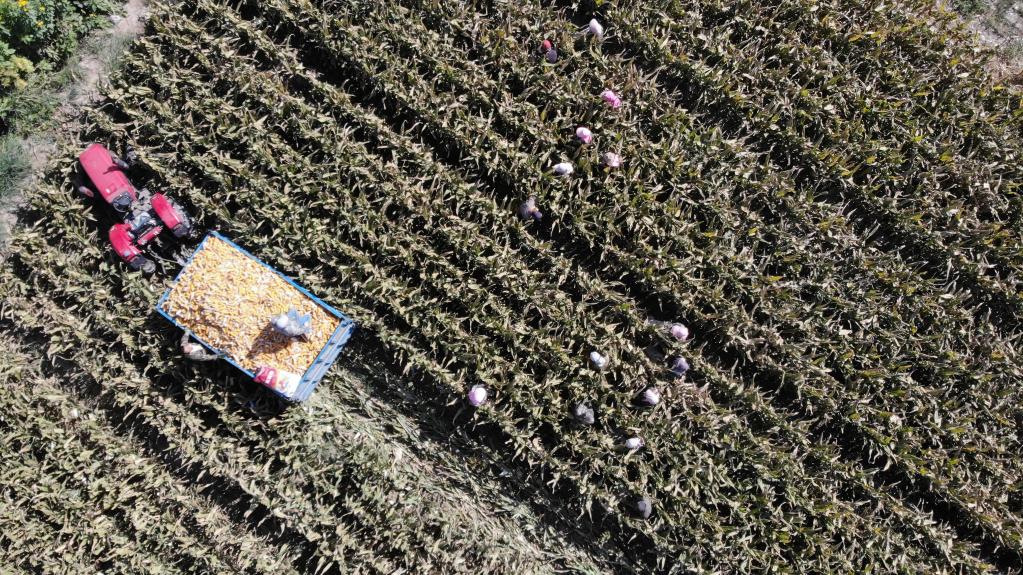 張文國正在收獲玉米種子。新華社記者 王朋 攝