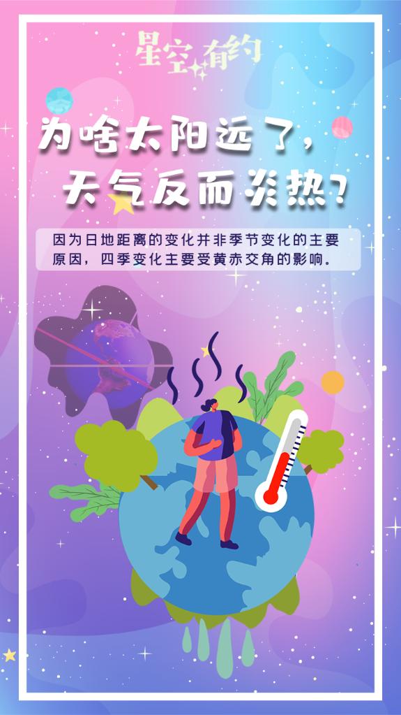 今年入伏的時(shí)間是7月16日,一年中最熱的時(shí)期即將到來(lái)。為啥太陽(yáng)遠了,天氣卻最炎熱?王科超解釋?zhuān)盏鼐嚯x的變化并非季節變化的主要原因。四季變化主要受黃赤交角的影響,由于黃赤交角的存在,太陽(yáng)在地球上的直射點(diǎn)在南北緯23度26分之間移動(dòng)。夏季,北半球的太陽(yáng)光照射角度高,光照時(shí)間長(cháng),接收到的輻射能量多,因此最為炎熱。