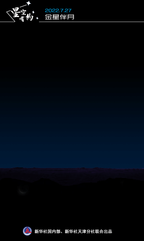新華社天津7月25日電(記者周潤?。┏?yáng)外,通常情況下,月球和金星的亮度是整個(gè)天空中排名第二位和第三位的自然天體。當兩者相合或相伴,星光與月光交織在一起時(shí),如夢(mèng)似幻,宛若童話(huà)。