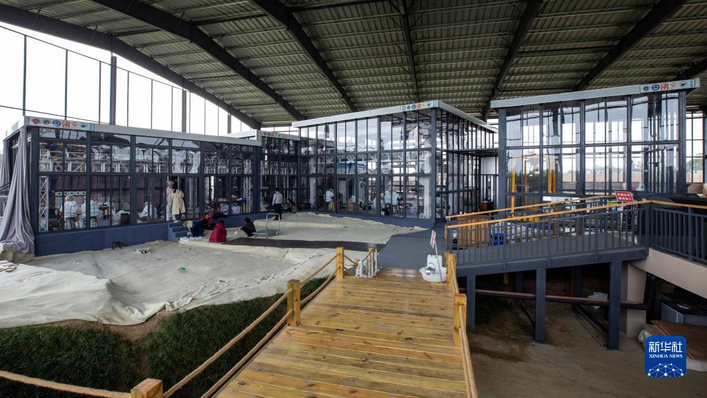 這是在位于四川省廣漢市的三星堆祭祀區考古發(fā)掘現場(chǎng)拍攝的4個(gè)大小不同的全透明“考古艙”(2021年3月10日攝)。新華社記者 沈伯韓 攝