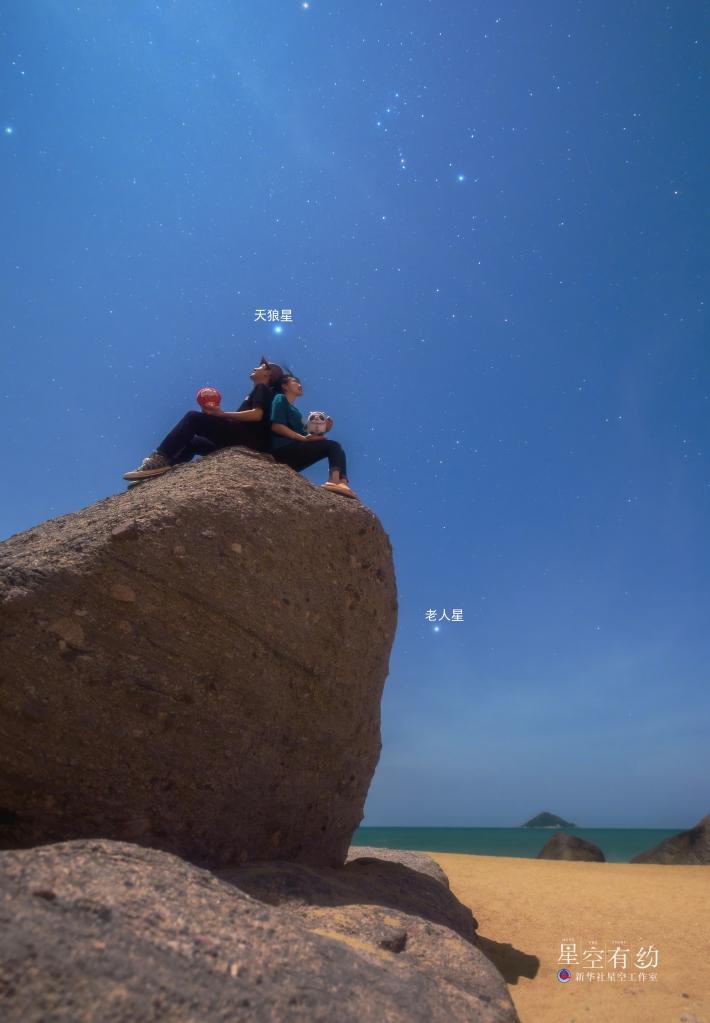 廣西天文愛(ài)好者羅弘揚2022年2月12日在海南三亞角頭灣拍攝的天狼星和老人星。(本人供圖)