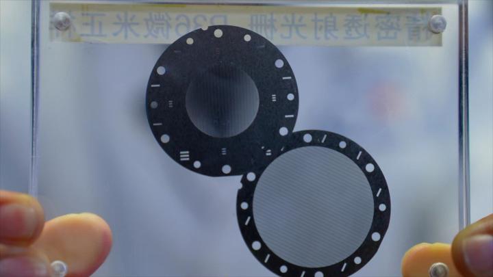 太陽(yáng)硬X射線(xiàn)成像儀的金屬鎢光柵。新華社記者林凱 攝