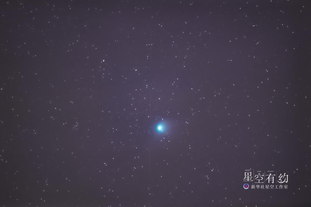 北京市天文愛(ài)好者賈淞寓1月30日在云南麗江雙子天文臺拍攝到的C/2022 E3彗星。(本人供圖)