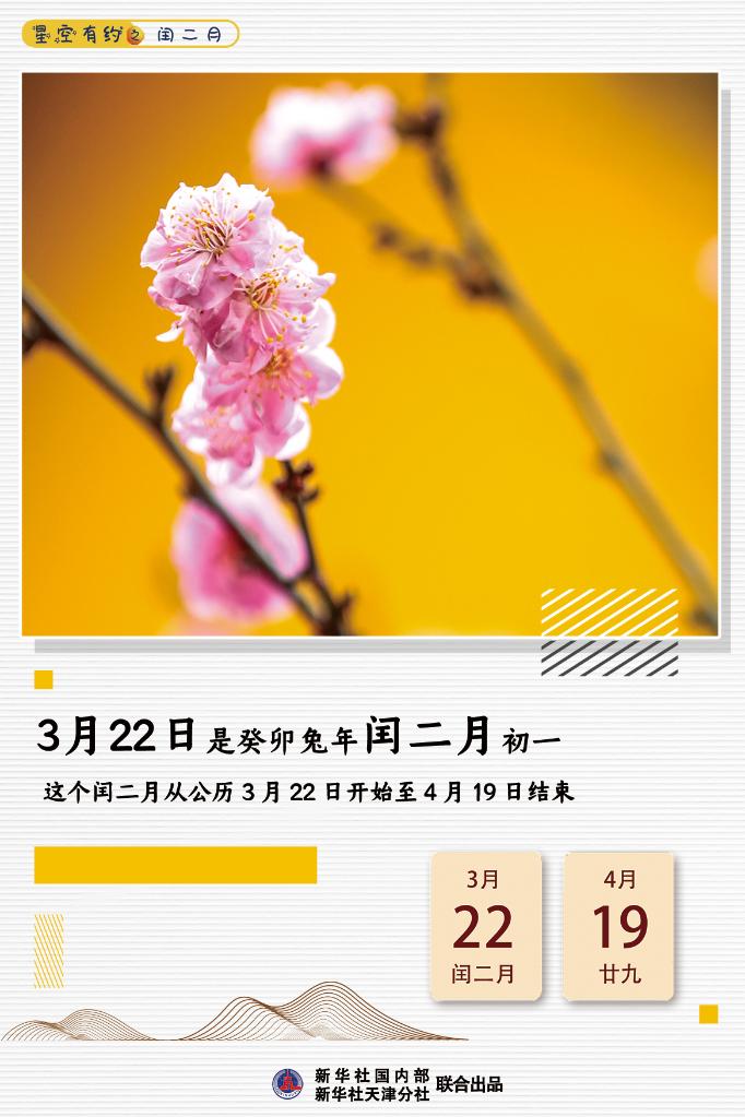3月21日農歷二月三十,是中氣春分,下一個(gè)中氣谷雨在4月20日農歷三月初一,這當中的3月22日至4月19日的農歷月中只有一個(gè)節氣清明,沒(méi)有中氣,所以這個(gè)農歷月就定為閏月。因為它的前面是二月,所以叫閏二月。
