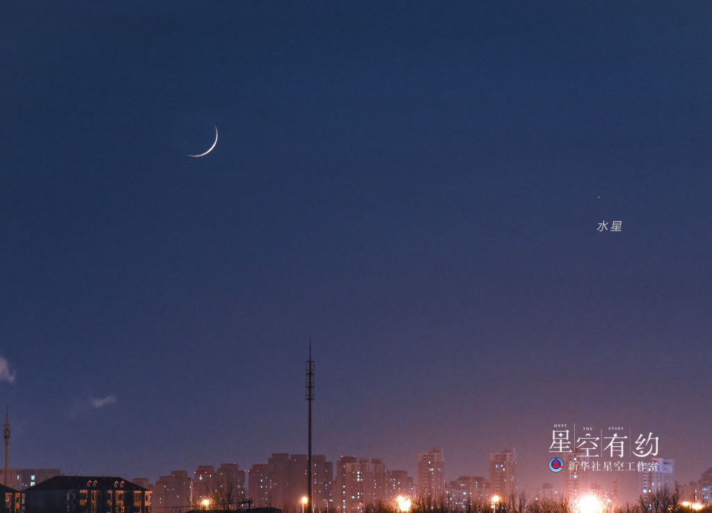 2022年1月7日水星東大距,這是天津市天文攝影愛(ài)好者楊婧在東大距前夕的1月4日傍晚在天津市東麗區拍攝到的水星與蛾眉月。(本人供圖)