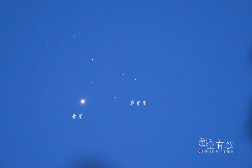 這是北京市天文攝影愛(ài)好者王俊峰2020年4月3日在北京房山拍攝的金星伴昴星團。(本人供圖)