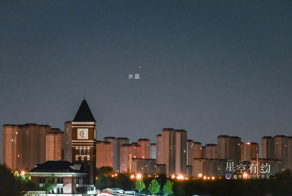 2022年10月9日水星西大距,這是天津市天文攝影愛(ài)好者楊婧10月10日凌晨在天津東麗吉兆橋拍攝的水星。(本人供圖)
