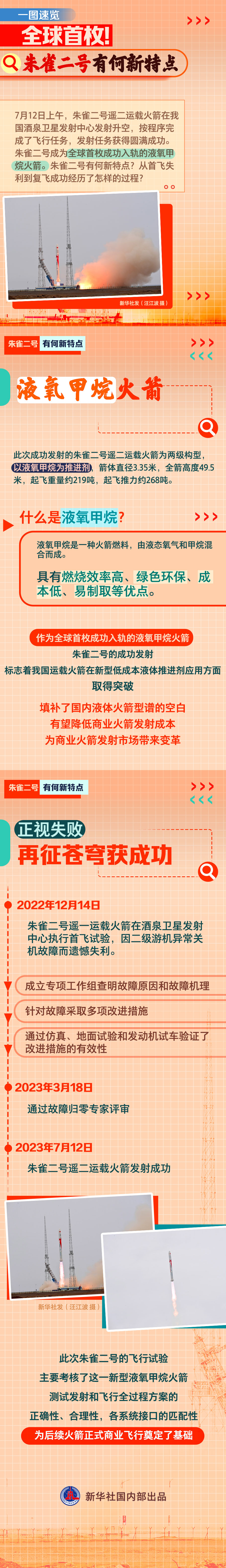 新華社北京7月12日電 題:全球首枚成功入軌的液氧甲烷火箭——朱雀二號有何新特點(diǎn)?