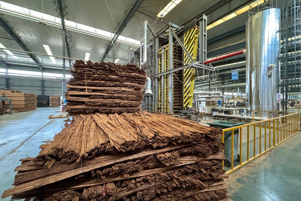 圖為一企業(yè)生產(chǎn)車(chē)間內竹材加工場(chǎng)景。新華社記者陳柱佐 攝
