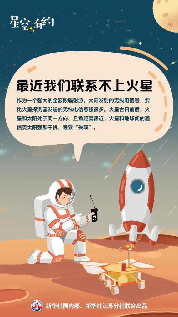 為防止太陽(yáng)輻射干擾等導致傳送指令丟失、擾亂探測器任務(wù),美國國家航空航天局官方網(wǎng)站發(fā)布,于當地時(shí)間11月11日至25日,暫停向火星上的探測器發(fā)送新指令。