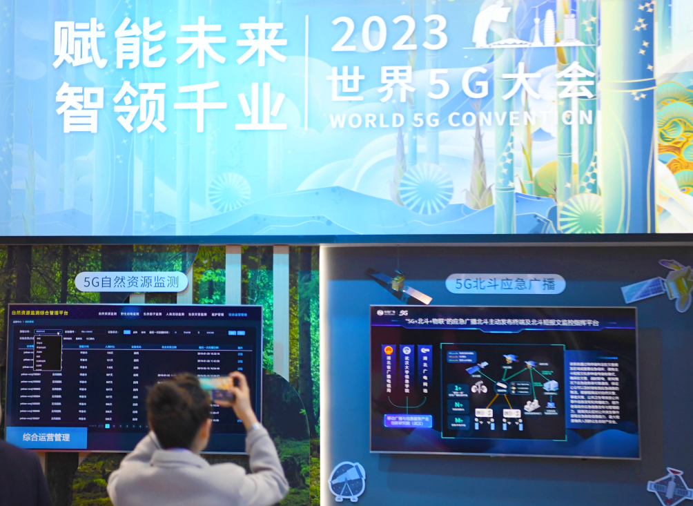 這是12月6日拍攝的2023世界5G大會(huì )展廳現場(chǎng)。新華社記者 郝源 攝