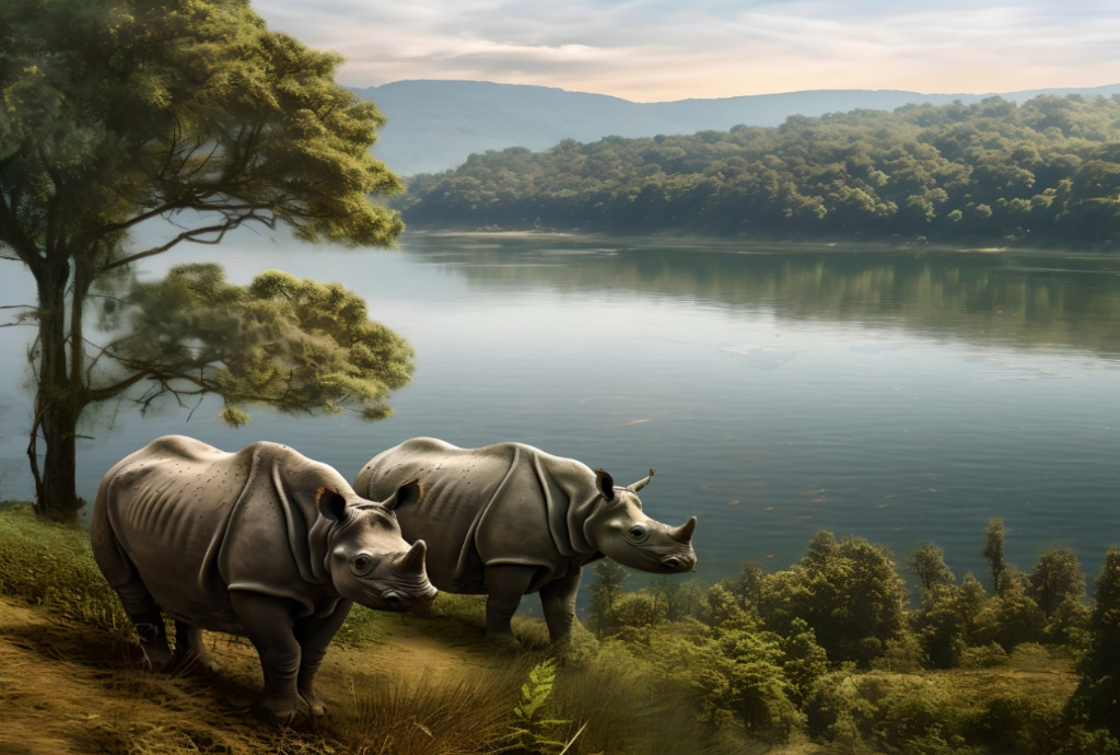 寧夏同心地區中新世中期葉氏翹鼻角犀生態(tài)復原圖。(中國科學(xué)院古脊椎所供圖)