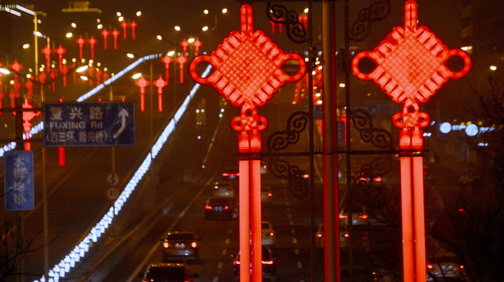 首都街頭張燈結彩,充滿(mǎn)濃濃的年味。圖為1月30日拍攝的北京市復興路夜景。(新華社記者李欣攝)