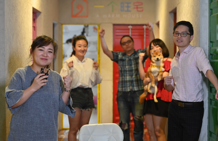 在福建廈門(mén)進(jìn)行網(wǎng)紅經(jīng)濟創(chuàng )業(yè)的臺青朱慧寧(左一),與她的主播們在直播后一起加油鼓勁。新華社記者 魏培全 攝