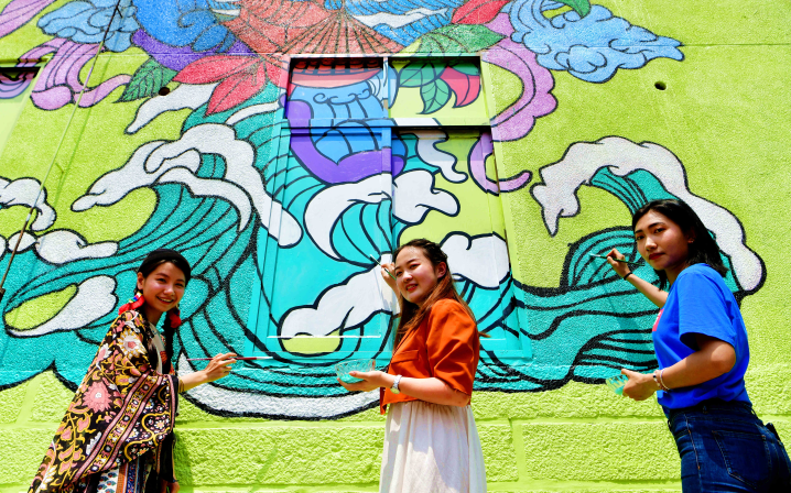 2019年6月,兩岸青年在海峽論壇第二屆創(chuàng )意涂鴉巡回賽上共同創(chuàng )作涂鴉作品《源園》。新華社記者 魏培全 攝