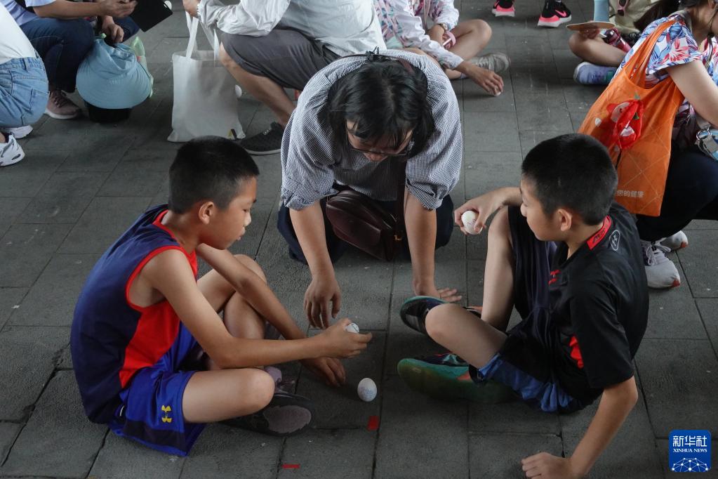 6月22日,民眾在臺北市大佳河濱公園參與端午節傳統的立蛋活動(dòng)。新華社記者 尚昊 攝