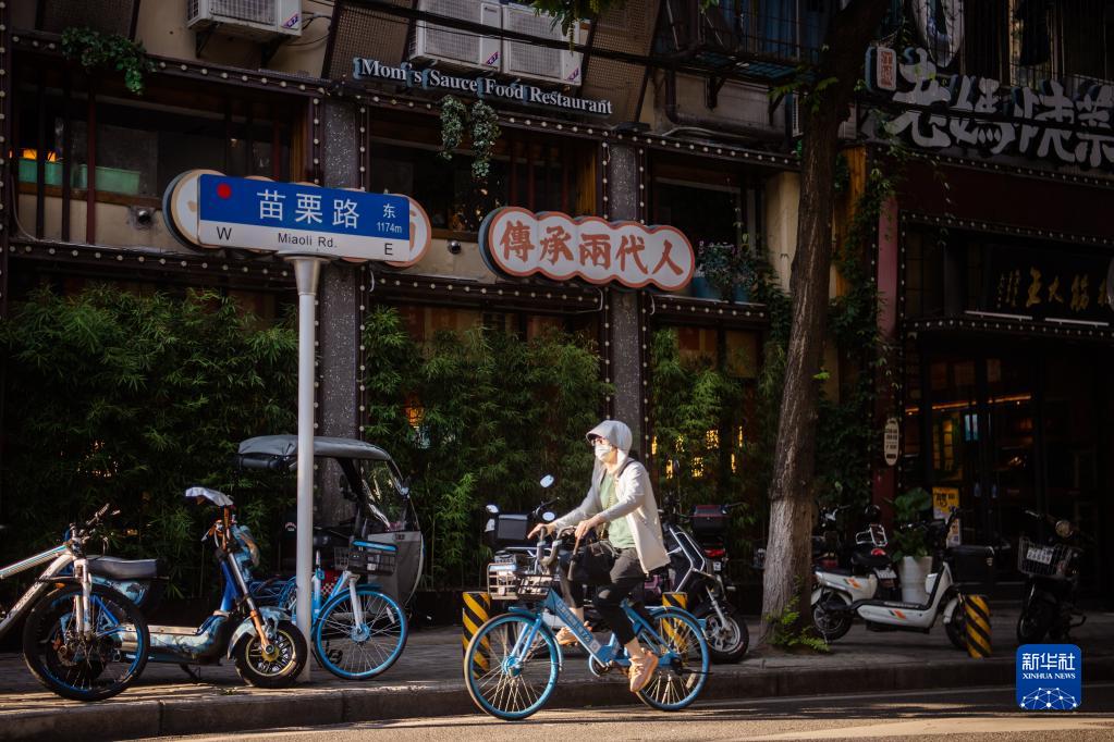 7月3日,市民在武漢市苗栗路上騎行。新華社記者 伍志尊 攝