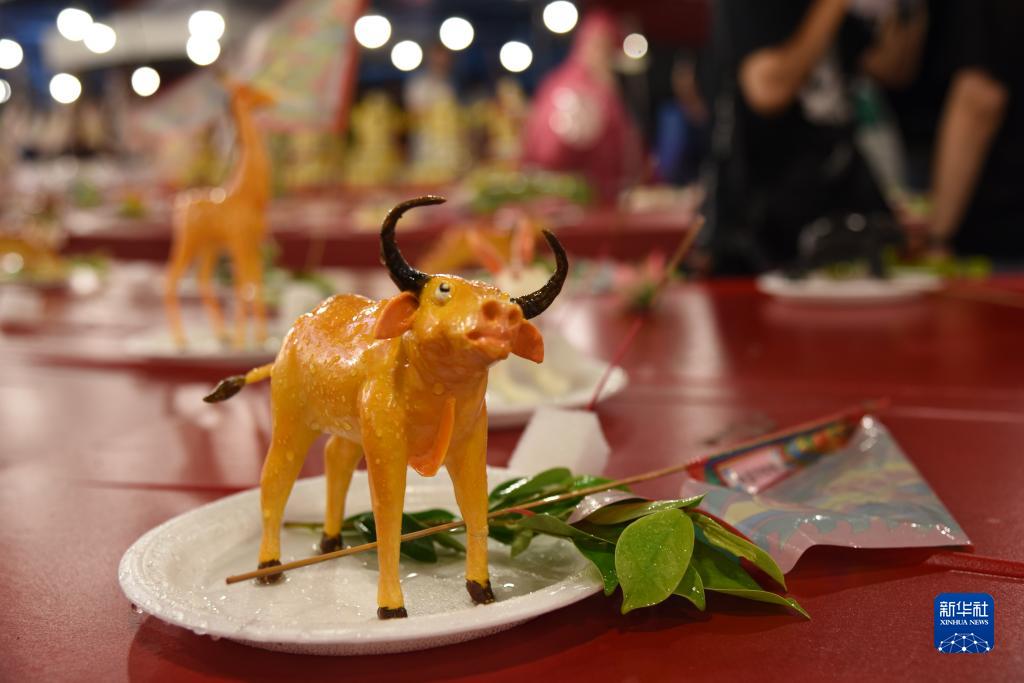 8月30日拍攝的“雞籠中元祭”活動(dòng)上的“米雕”供品。新華社記者 王承昊 攝