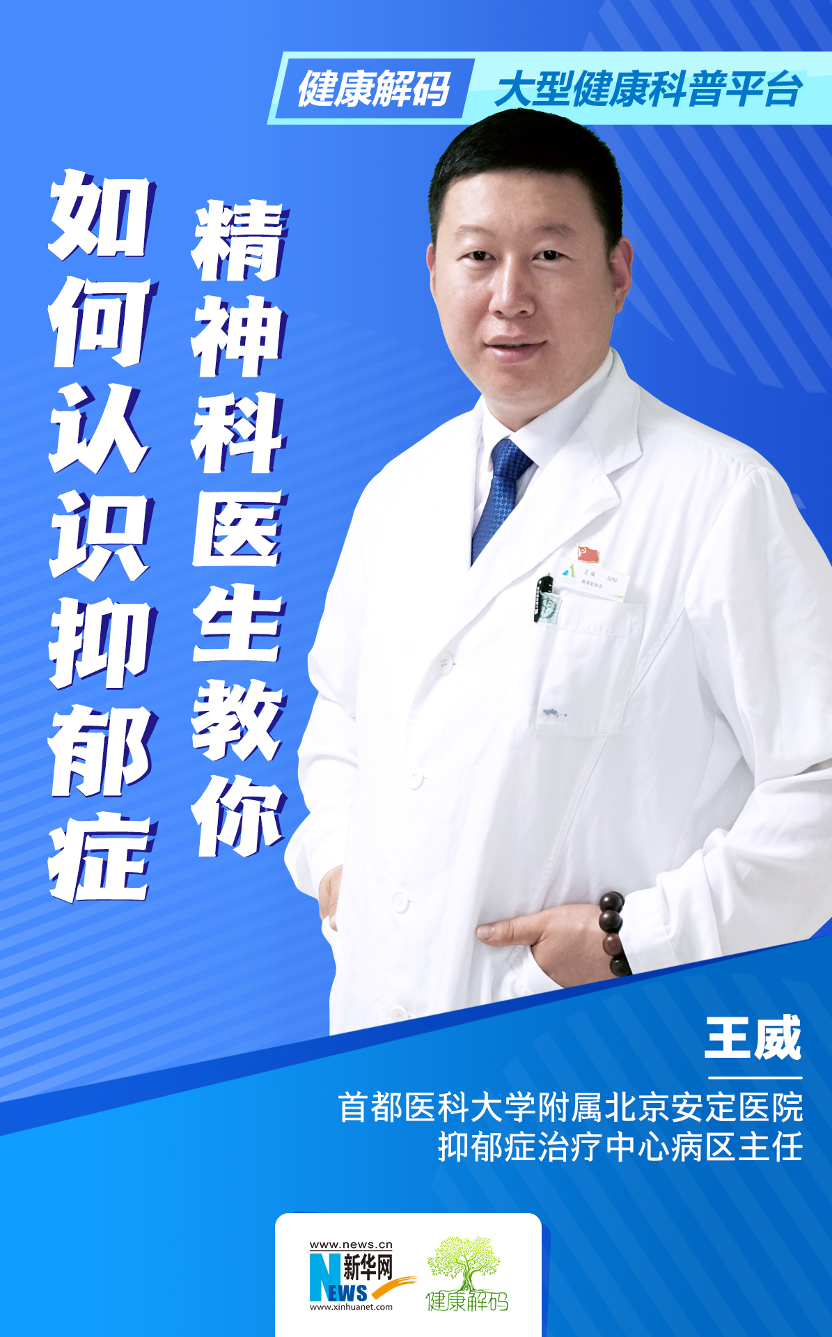????????王威,醫學(xué)碩士、副主任醫師,北京安定醫院抑郁癥治療中心病區主任,是知名抑郁癥專(zhuān)家王剛教授團隊成員。多年來(lái)一直在抑郁癥治療中心從事臨床、教學(xué)、科研工作,熟悉精神科常見(jiàn)疾病的診治,擅長(cháng)情感障礙疾病的診斷和治療。