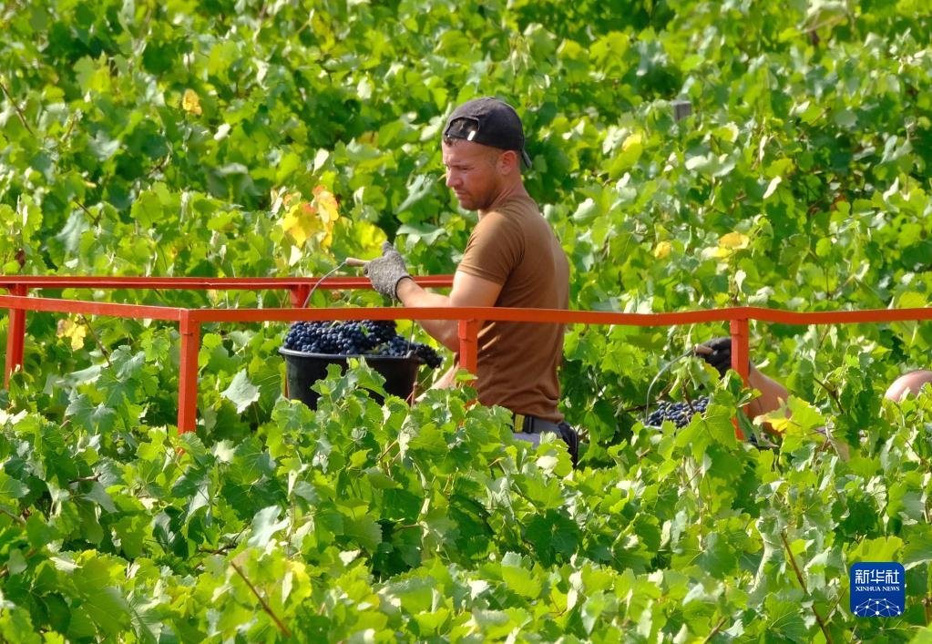 9月9日,在法國南部濱海阿爾卑斯省的芒德略拉納普勒,果農采摘用來(lái)釀酒的葡萄。